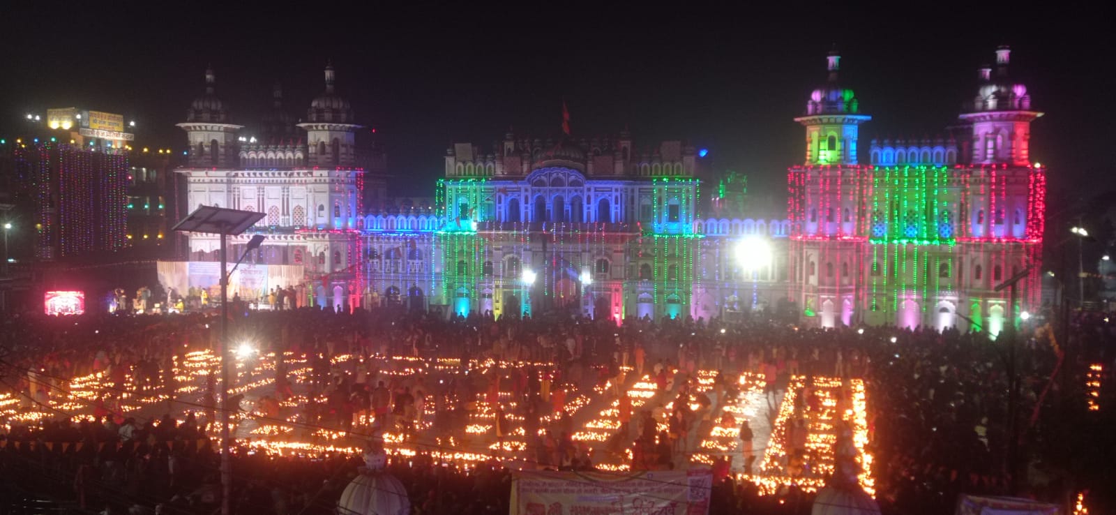 जानकी मन्दिर प्रांगणलाई रंगोली, फूल तथा दीपले सजाइएको छ । जानकी मन्दिर व्यवस्थापन पक्ष लगायत हिन्दुवादी संगठनहरुले दीप प्रज्वलन गरेका छन ।