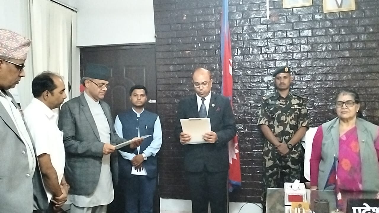 जनकपुर, २ असार । मधेश प्रदेशका नवनियुक्त मुख्य न्यायाधिवक्ता सुरेन्द्र कुमार महतालेले पद तथा गोपनीयताको शपथ लिनुभएको छ ।