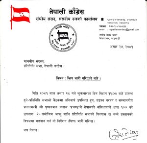 लेखकले जारी गरेको निर्देशन पत्रमा भनिएको छ, ‘मिति २०८१ साल असार २८ गते शुक्रबारका दिन विहान ११:०० बजे प्रारम्भ हुने प्रतिनिधि सभाको बैठकमा अनिवार्य उपस्थित हुन, तटस्थ नरहन र सम्माननीय प्रधानमन्त्री श्री पुष्पकमल दाहाल प्रचण्डले नेपालको संविधानको धारा १०० को उपधारा (२) बमोजिम आफूमाथि प्रतिनिधि सभाको विश्वास छ भन्ने प्रस्तावको विपक्षमा मतदान गर्न यो निर्देशन (ह्विप) जारी गरिन्छ ।