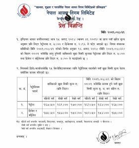 काठमाडौँ, ३१ साउन । नेपाल आयल निगमले इन्धनको मूल्य घटाएको छ ।