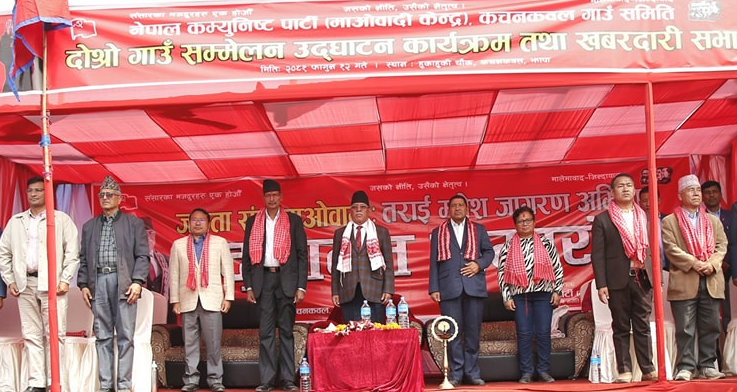झापामा आयोजित तराई–मधेश जागरण अभियानको उद्घाटन समारोहलाई सम्बोधन गर्दै प्रचण्डले अरु पार्टीसँग सहकार्य नगर्न माओवादीलाई जनताले नै सुझाव दिएको बताए ।