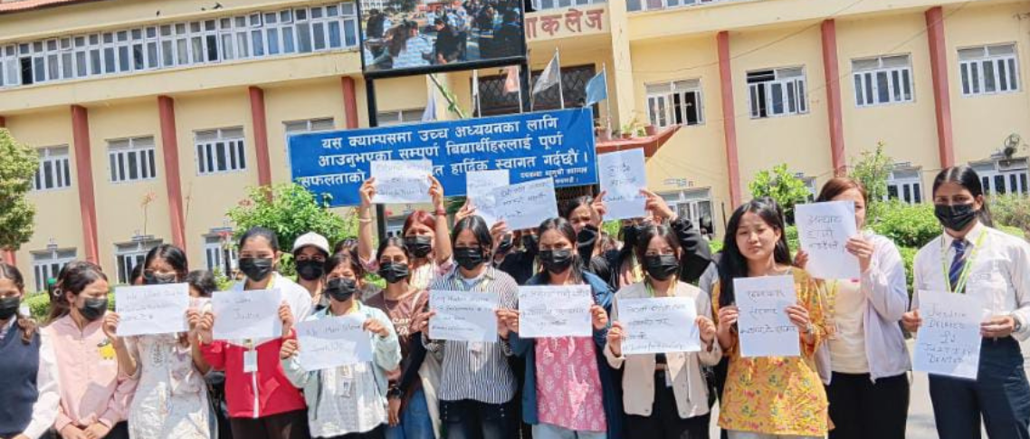 काठमाडौँ, १९ वैशाख । काठमाडौँको पद्मकन्या कलेजका विद्यार्थीले शुक्रबार बिहान घटनाका दोषीलाई कारबाहीको माग गर्दै प्रदर्शनमा गरेका छन् ।