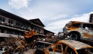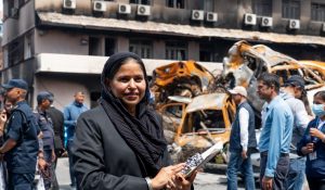 आगजनीपछि फैलिएको धुलो र पानी मिसिएर बनेको कालो हिलोको गन्ध पालभित्र अझै फैलिएको थियो ।