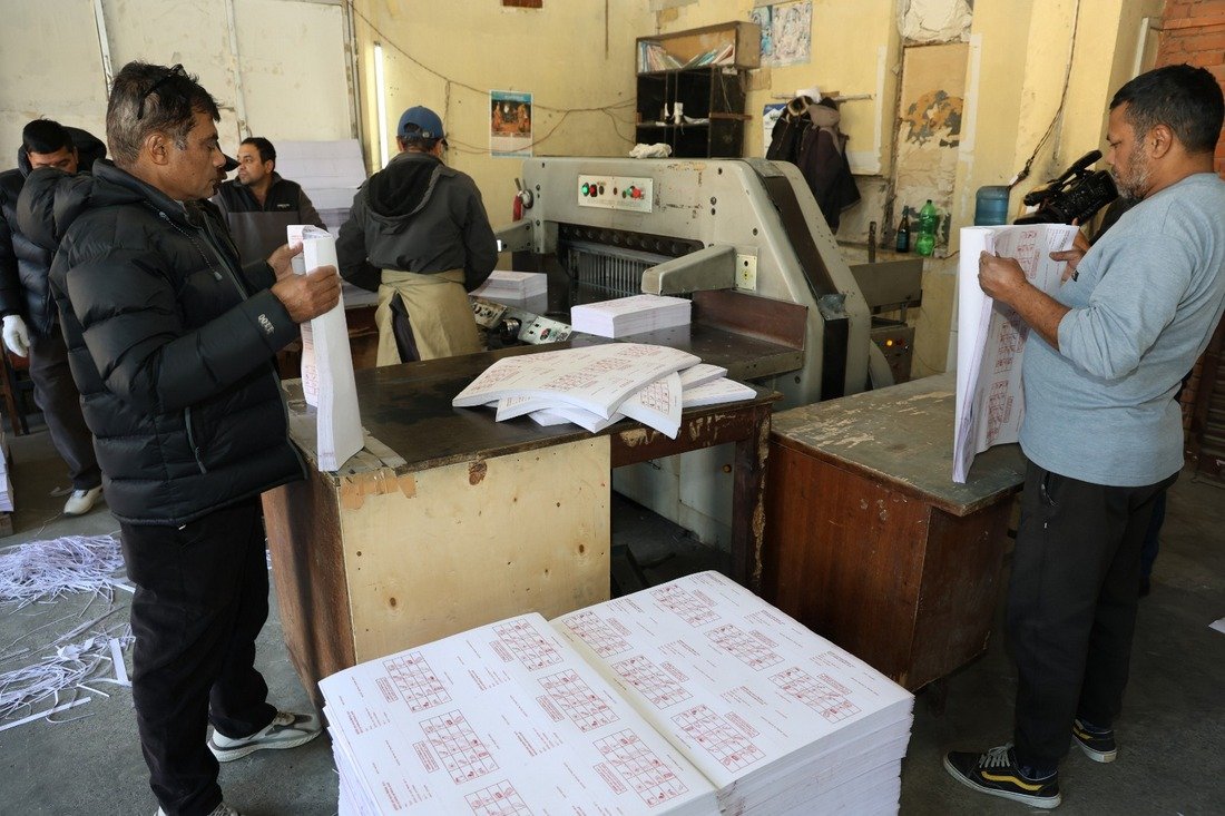 भक्तपुरस्थित जनक शिक्षा सामग्री केन्द्रमा नियमित रूपमा मतपत्र छपाइ भइरहेको छ । हालसम्म १ करोड ७१ लाख ६३ हजार मतपत्र छपाइ भइसकेको छ ।