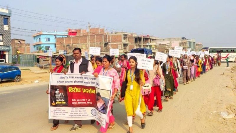 काठमाडौं, २ चैत । सुर्खेतकी इनिशा विकको बलात्कारपछि हत्या भएको घटनाका दोषीलाई कडा कानुनी कारबाहीका माग गर्दै सोमवार झापाको काँकरभिट्टामा विरोध प्रदर्शन गएको छ ।