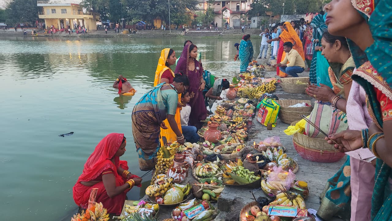 चारदिने पर्वअन्तर्गत षष्ठी तिथिका दिन व्रतालुले जलाशयमा उभिएर अस्ताउँदो सूर्यलाई अर्घ अर्पण गरेका हुन् ।