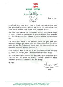 काठमाडौँ, ९ बैसाख । नेपाली काँग्रेसले नेपाल विद्यार्थी संघ -नेविसंघ) का नेताहरूलाई पक्राउ गरिएको घटनाप्रति आपत्ति जनाउँदै तत्काल रिहाइको माग गरेको छ ।