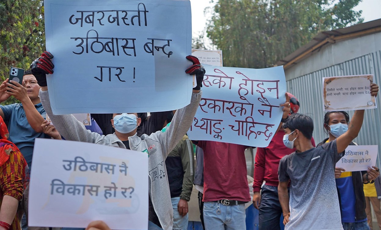 काठमाडौ, ११ वैशाख । सुकुमवासी बस्ती खाली गराउने सरकारको निर्णयविरुद्ध थापाथली क्षेत्रमा प्रदर्शन चर्किएको छ ।