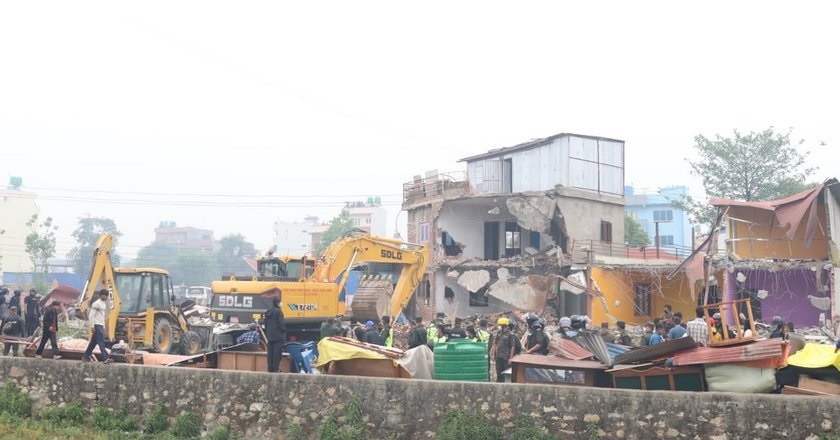 काठमाडौं, १३ वैशाख । काठमाडौंको भक्तपुरस्थित मनोहरा खोला किनारमा रहेका सुकुमबासी बस्ती तथा अतिक्रमित संरचना हटाउन पुनः डोजर चलाइएको छ ।
