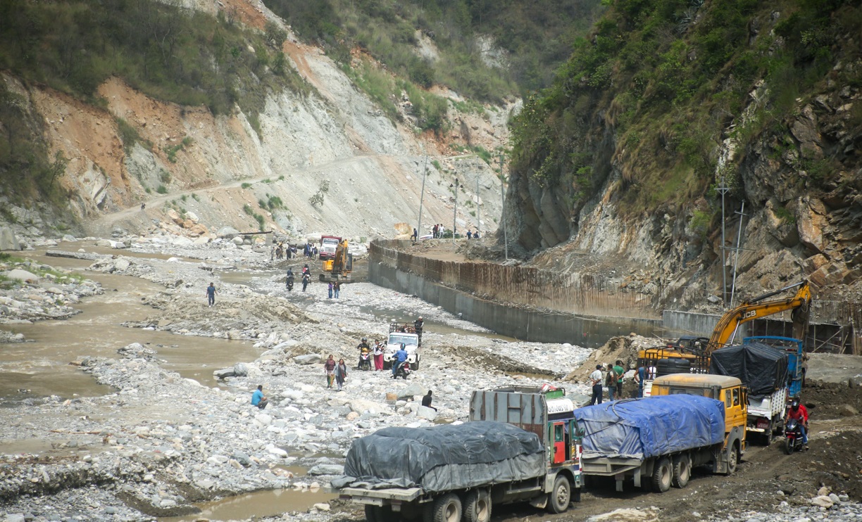 बाढीले विभिन्न स्थानमा डाइभर्सन बगाएपछि अस्थायी रूपमा खोला किनार हुँदै नयाँ डाइभर्सन निर्माण गरेर यातायात सञ्चालन गरिएको छ ।
